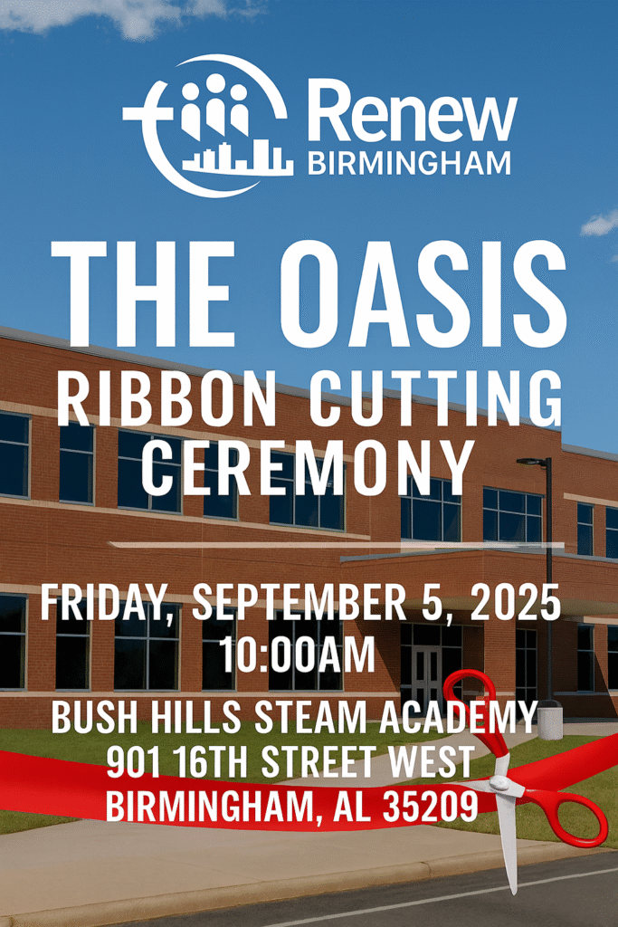 Renew Birmingham, in partnership with community supporters, is hosting a ribbon-cutting ceremony for “The Oasis”—an innovative space designed for teachers to relax and rejuvenate. Complete with amenities such as a massage chair, The Oasis serves as a reminder that while the education of our children is vital, the health and wellness of those who teach them is just as important. This project reflects our commitment to supporting educators and strengthening the community—just another way we’re “Putting the Neighbor Back in Neighborhood!”