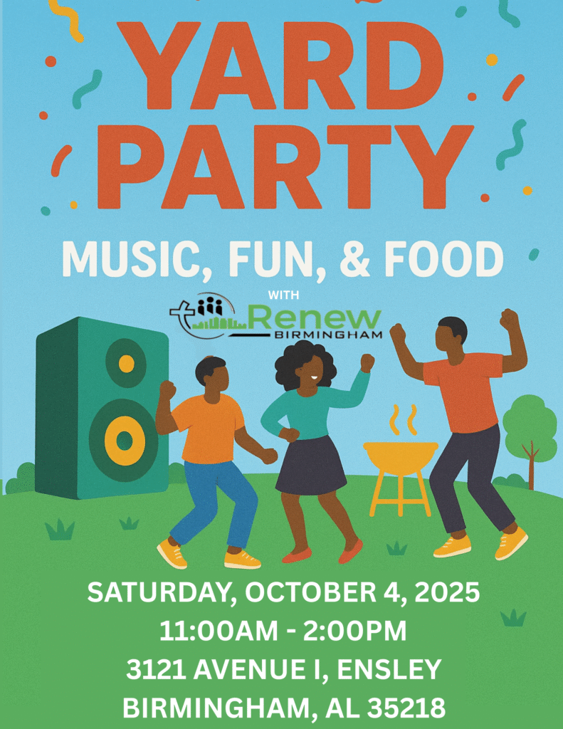 We’re excited to announce the return of Renew Birmingham’s Yard Parties! These family-friendly gatherings are all about bringing neighbors together to enjoy music, food, fun, and fellowship while strengthening the bonds that make our community thrive. We invite everyone to come out, connect with one another, and be part of an uplifting event that celebrates unity, joy, and community cohesion.