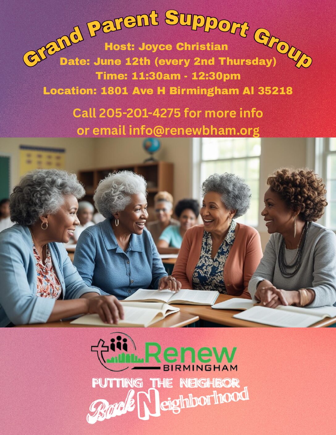 Join Renew Birmingham for an afternoon of fun, food, music, and connection with your neighbors. Bring your family, meet new friends, and enjoy a welcoming space filled with games, resources,…