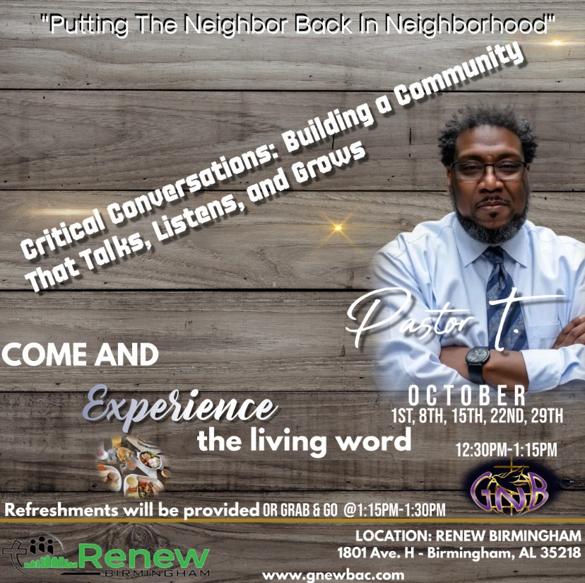 Renew Birmingham invites you to an inspiring Bible study that encourages critical thinking, open discussion, and a fresh perspective on what “church” truly means. Join us as Pastor Tommy Jones…